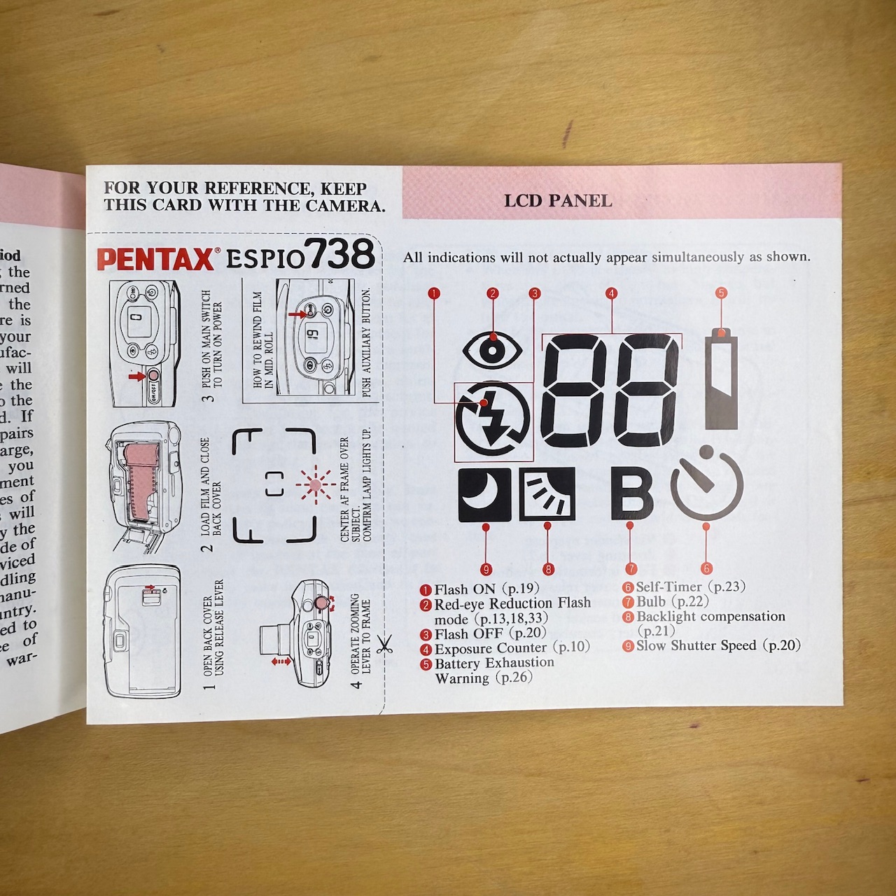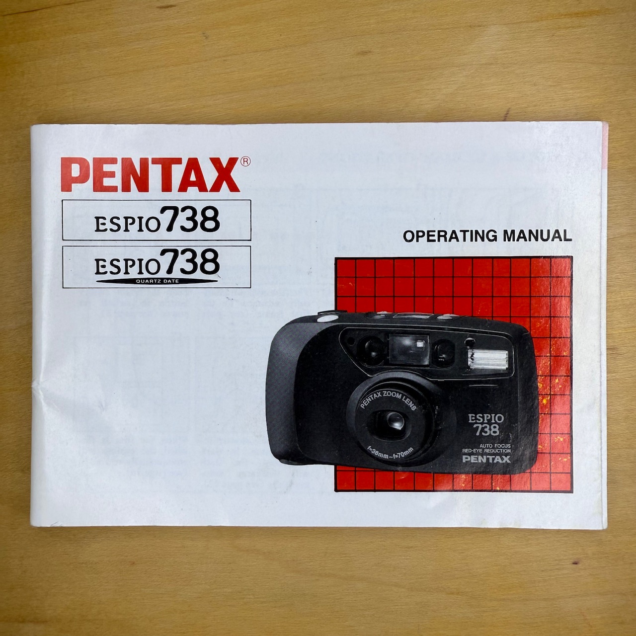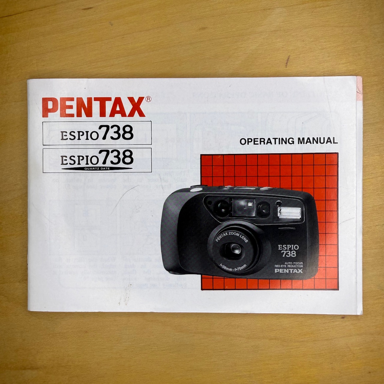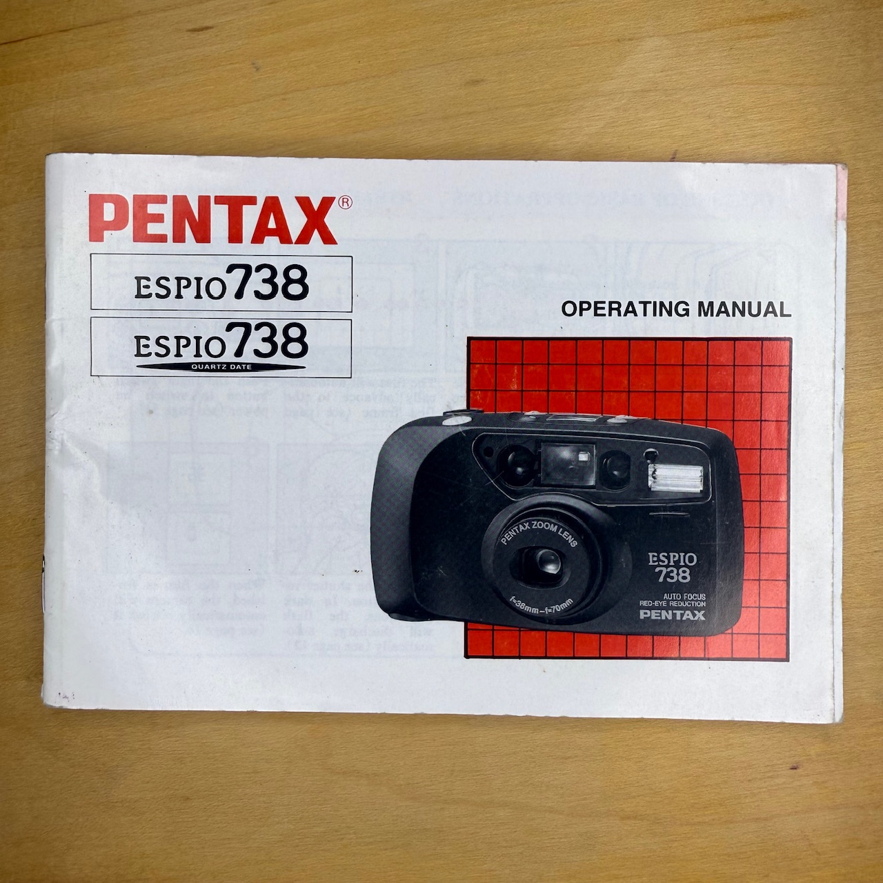This manual is for a Pentax Espio 738 (and the Quartz Date version) compact camera. It’s in good condition with all the pages.