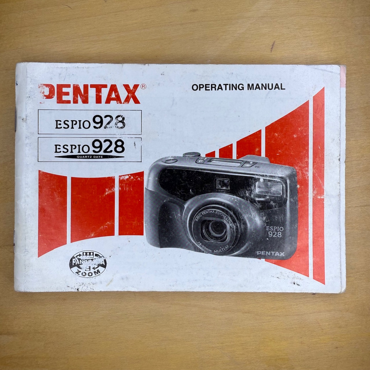 This manual is for a Pentax Espio 928 (and the Quartz Date version) compact camera. It’s in good condition inside, with all the pages, but the cover is worn as the gallery images show.
