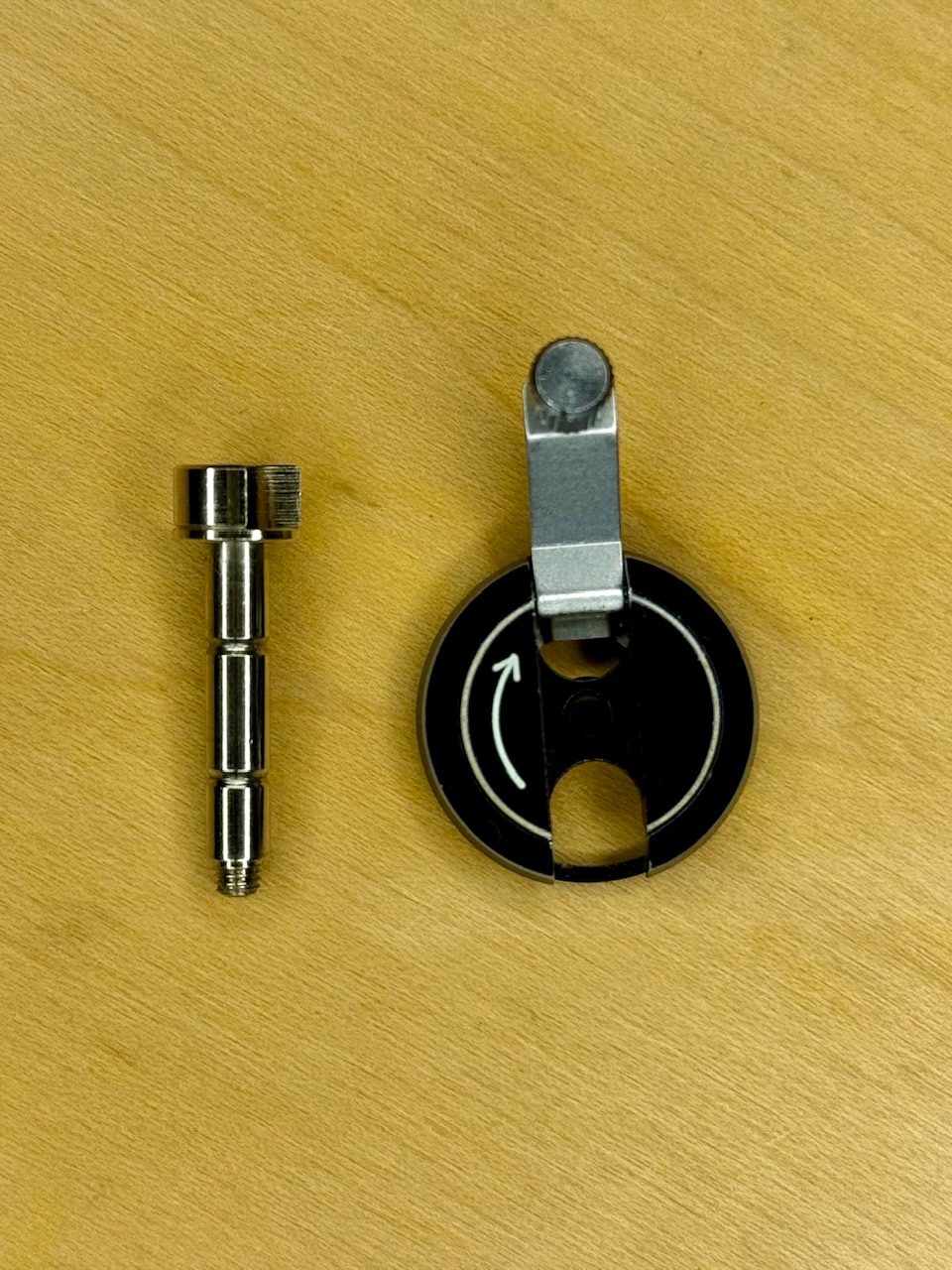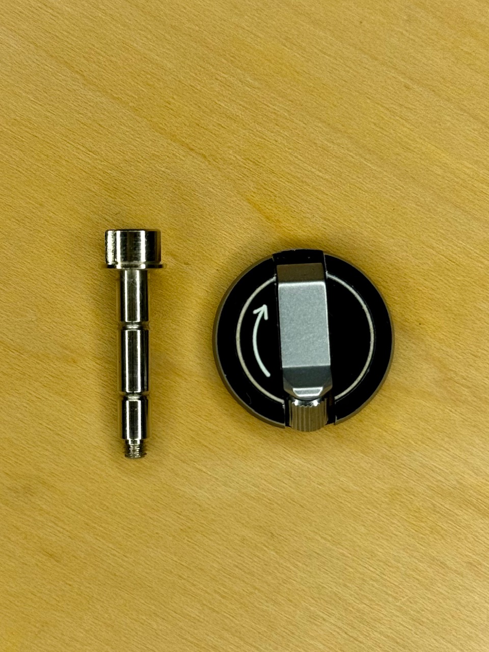 Condition: The knob, lever and crank are in very good condition, with minimal or no wearing to the black anodising. The chromed shaft is in very good cosmetic condition too. Please see the images for reference.