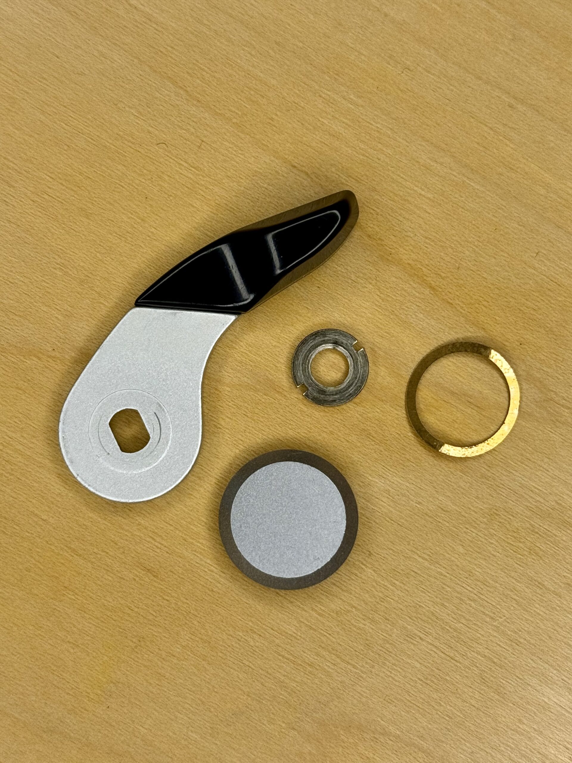 This lever is from a Pentax ME Super. It appears to be identical to the Pentax ME too. This spare includes the nut, sprung washer and cap.