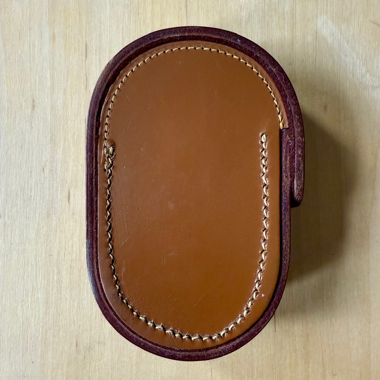 The case is made from solid / rigid leather and in good condition. It’s a case from an earlier version in the Weston Meter line, and is much better made than later versions.